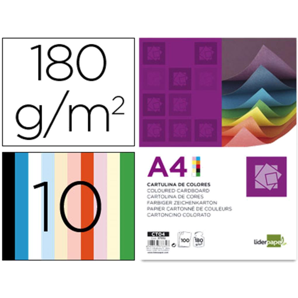 Cartulina liderpapel a4 180g/m2 10 colores surtidos paquete de 100 hojas