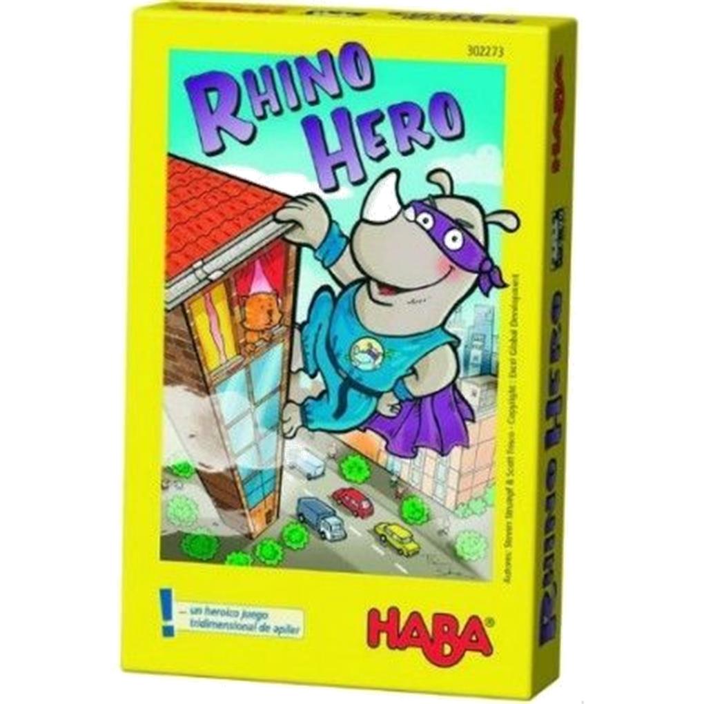 Este superhéroe bestial escala sin miedo los edificios más altos para divisar a ladrones y bribones. Es fuerte como un león y listo como un zorro, pero tambien es tan pesado como un rinoceronte. Esto hace que se tambaleen hasta los rascacielos más sólidos.¿Podéis ayudar a Rhino Hero a cumplir su tambaleante misión, y construir un rascacielos que sea estable?