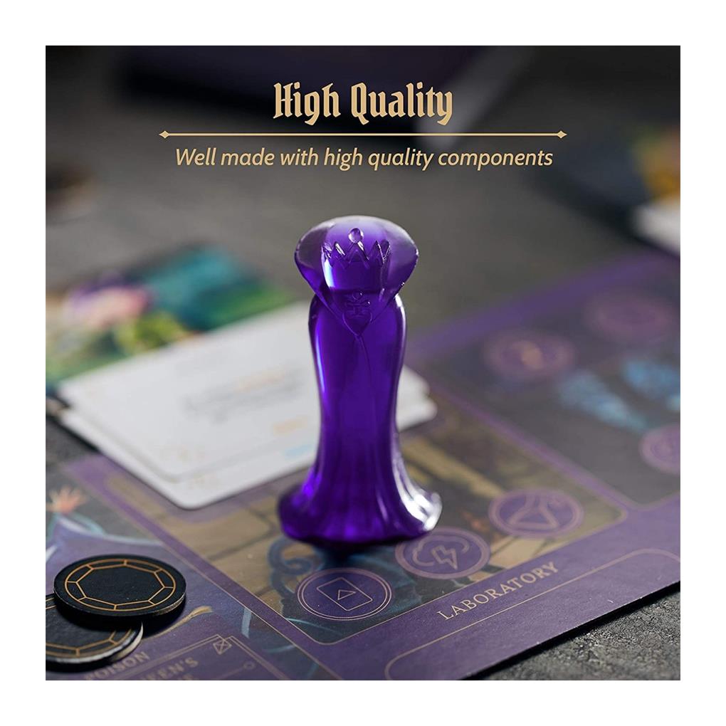 DISNEY VILLAINOUS: WICKED TO THE CORE. ¿Qué Villano quieres ser? En esta épica lucha de poderes malignos, asumirás el papel de un Villano Disney y tendrás que tratar de alcanzar tu propio objetivo maquiavélico. Descubre las habilidades únicas de tu personaje y su estrategia ganadora, aprovechando al mismo tiempo los giros del destino para frustrar los planes de tus oponentes. ¿Quién triunfará sobre las fuerzas del bien y se hará con la victoria? Disney Villainous es un divertido juego de mesa para familias y jugadores. Es un juego de estrategia ligera para hasta 6 jugadores. En la caja encontrarás 6 tableros, 6 villanos Movers, 180 tarjetas de villano, 90 tarjetas de destino, 84 fichas, 1 caldera, 6 tarjetas de referencia, 6 guías de villano e instrucciones 3 NUEVOS VILLANOS DISNEY: HADES, EL DOCTOR FACILIER Y LA REINA