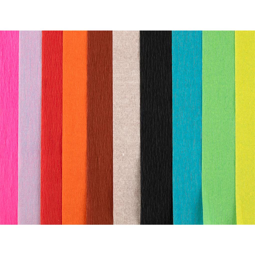 10 hojas de papel crespón en colores surtidos. Gramaje 34 g/m². Medidas: 315 x 240 mm.