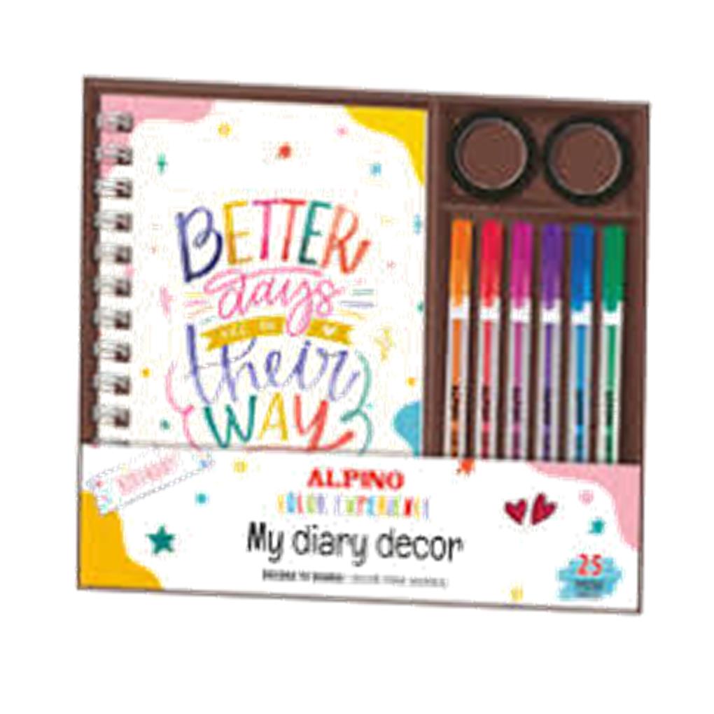 Contenido: – 1 Bloc espiral. – 2 Cinta washi tapes. – 6 Bolígrafos de gel. – 2 Láminas con pegatinas
