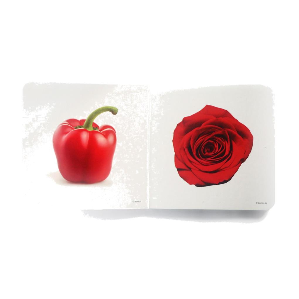 Libro de fotografía que muestra el color rojo en la naturaleza y objetos cotidianos.