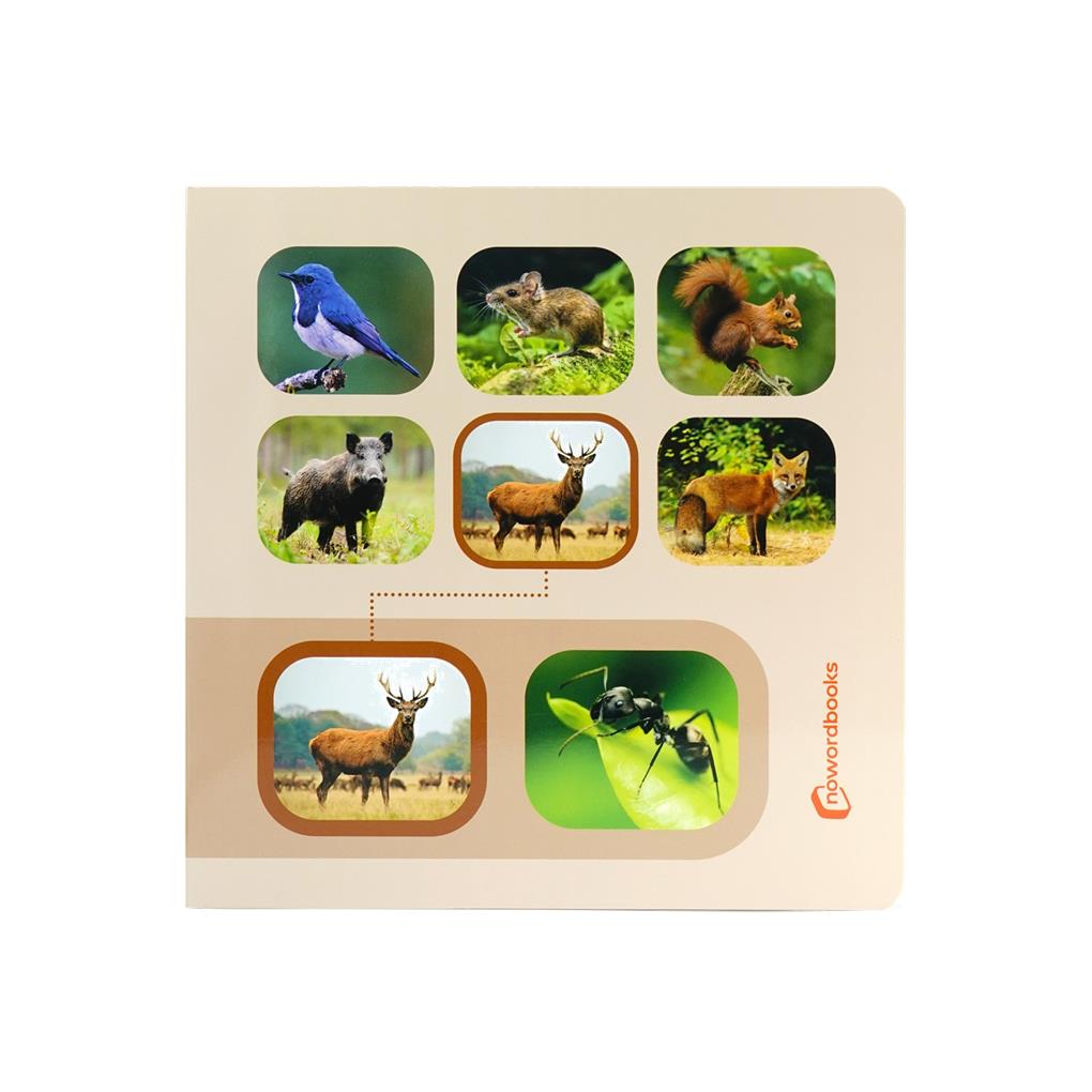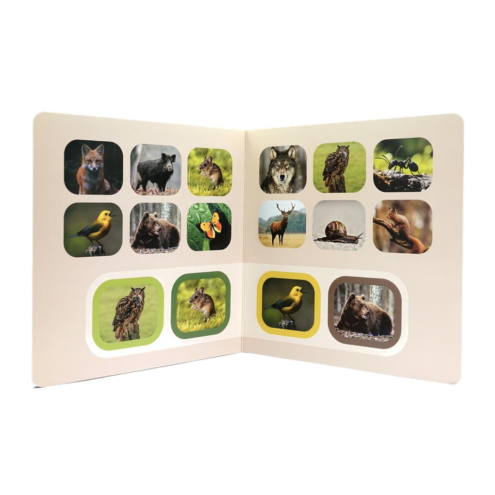 Libro con imágenes reales para buscar los distintos animales que podemos encontrar en un bosque.