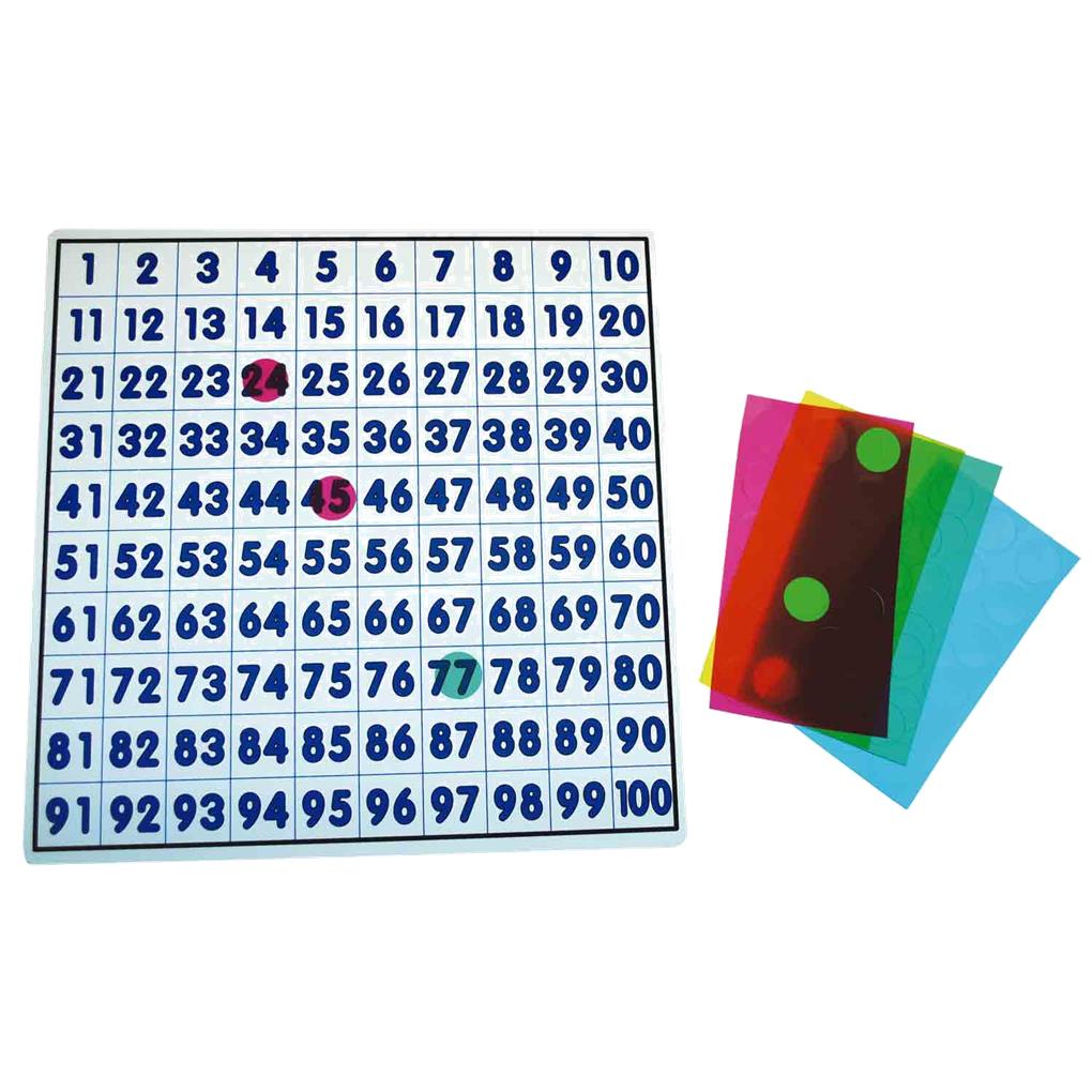 · Un tablero de 100 para aprender y jugar con los números hasta el 100 sobre mesas de luz.