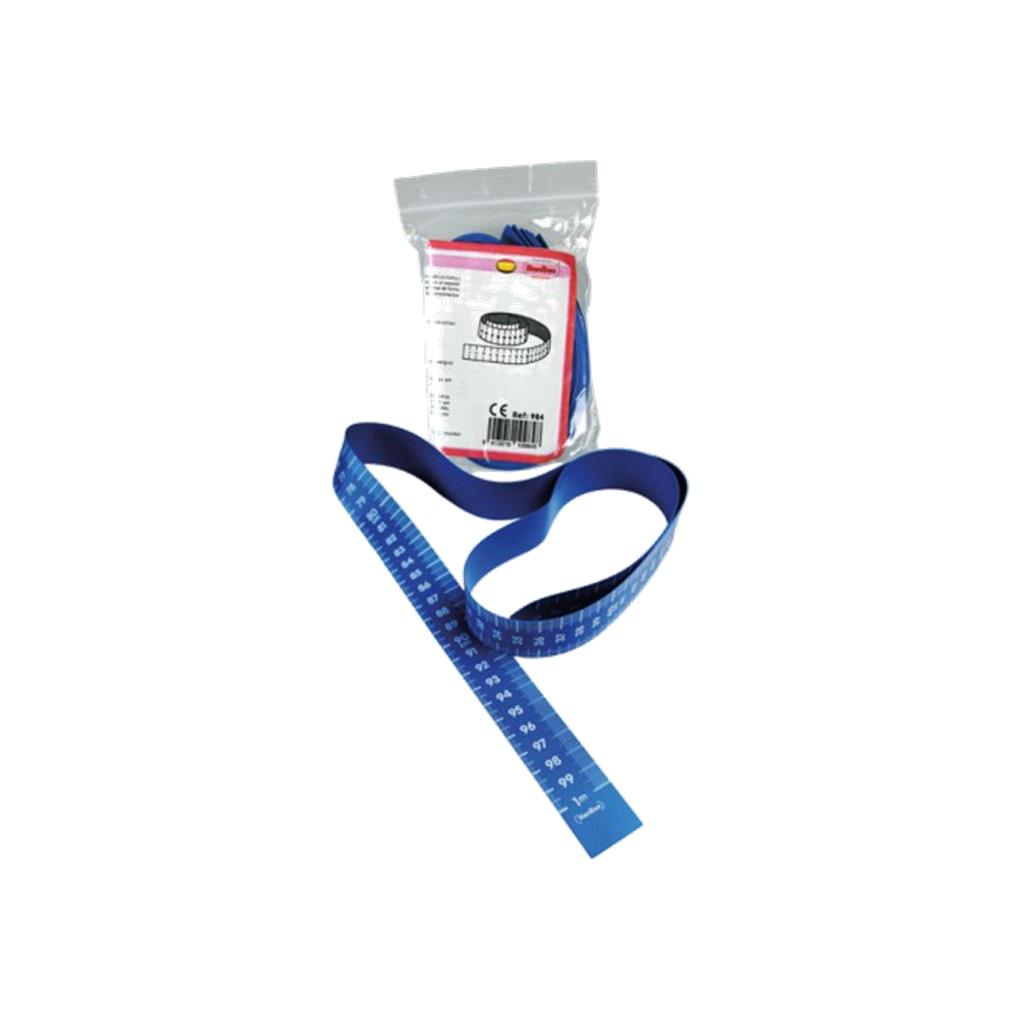 Contenido: 10 cintas en lona plástica serigrafiadas en centímetros.1mx5cms.