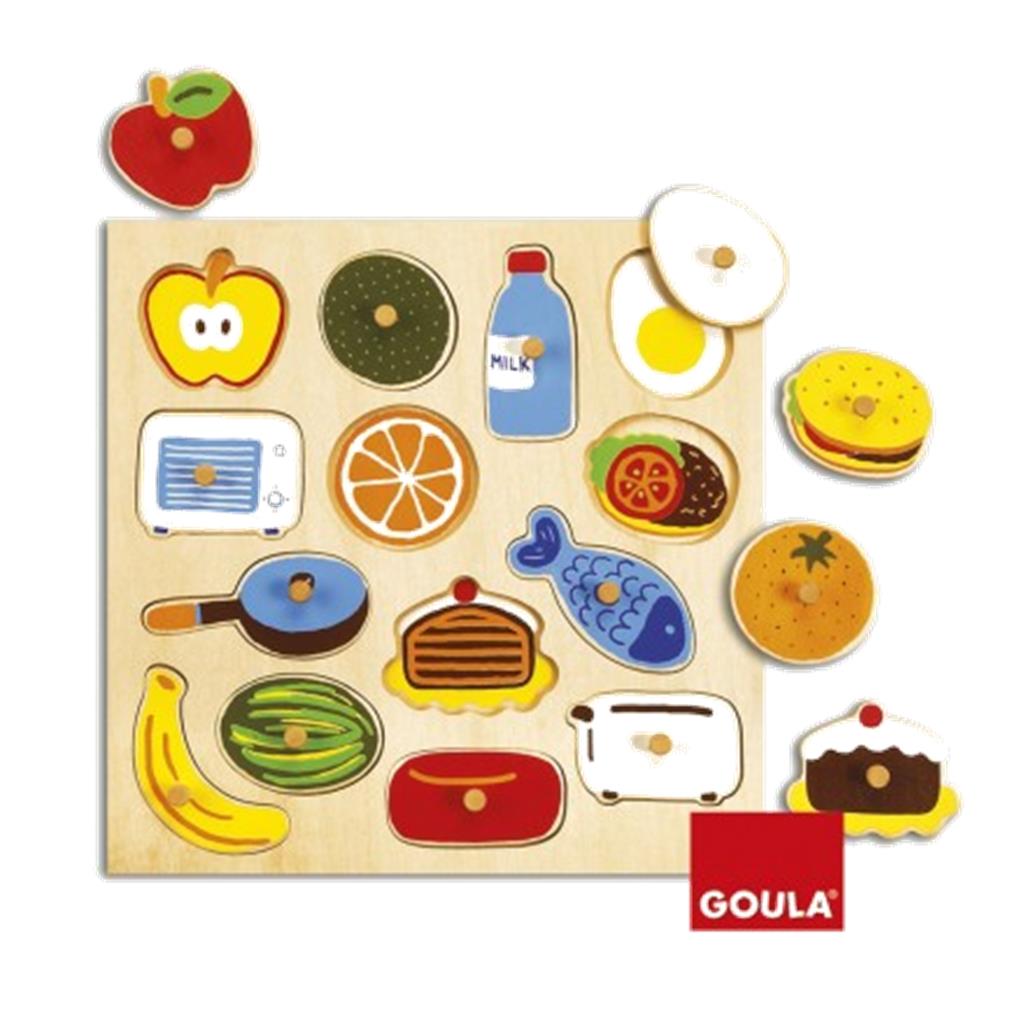 Encaje de 14 piezas. Ilustraciones de colores vistosos. Doble fondo. Relacionan objeto con su interior.