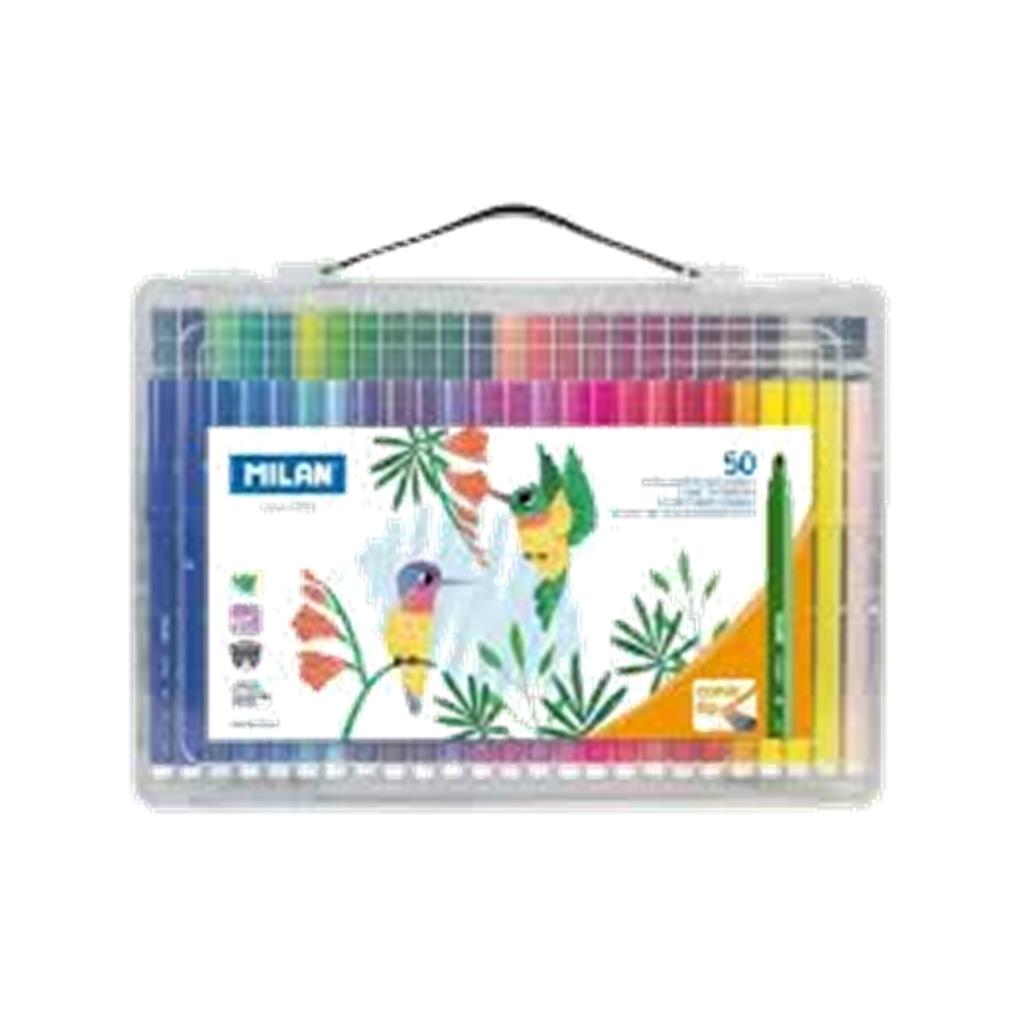 MALETIN 50 ROTULADORES PUNTA CONICA DISEÑO COLIBRI