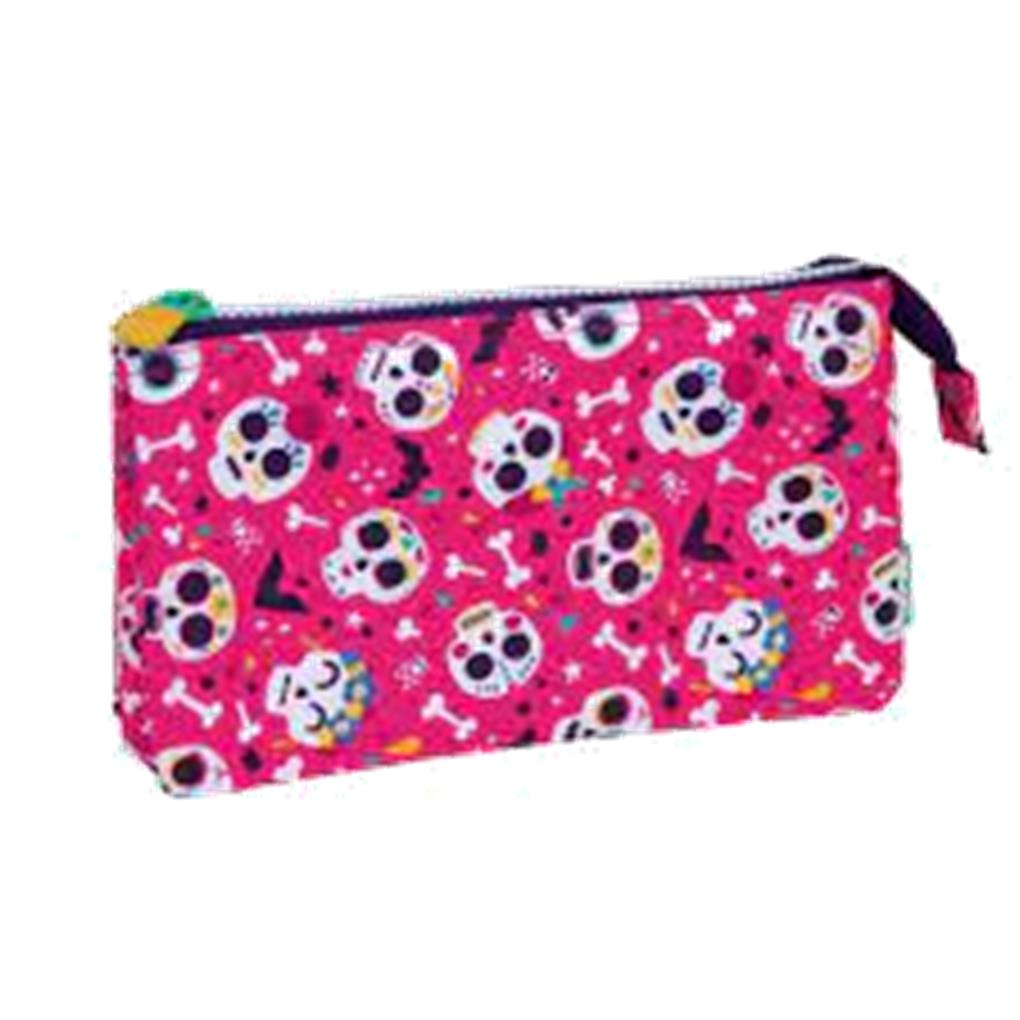 Estuche portatodo con 5 compartimentos. Edición especial Bats & Bites, color rosa. Composición: exterior y forro interior de poliéster. Medidas:22 x 12 x 4 cm.