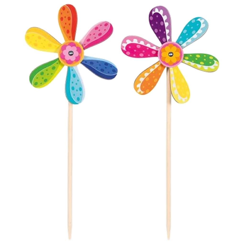 El molino «Torbellino», una elegante turbina eólica de madera, llama la atención en cualquier jardín. Con sus coloridos motivos, aporta un toque alegre a los parterres, terrazas, balcones o jardines.
