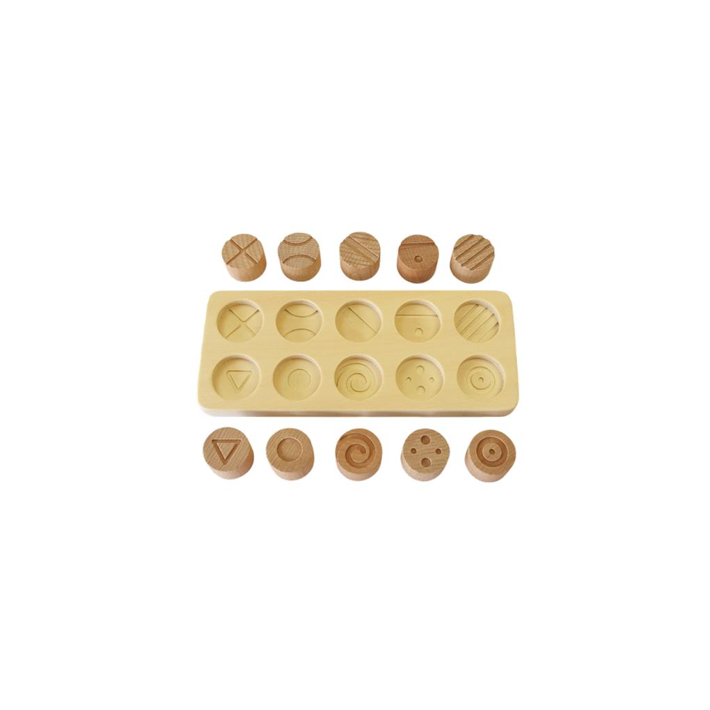 Encaje sensorial de 10 piezas, fabricado en madera natural. Compuesto por 10 grabados distintos. Agudiza el desarrollo sensorial y la clasificación de las diferentes piezas, según el relieve. Material didáctico idóneo para trabajar el reconocimiento táctil. Elemento pedagógico inclusivo, ideal para niños o personas con algún tipo de diversidad funcional y para el colectivo de personas mayores.