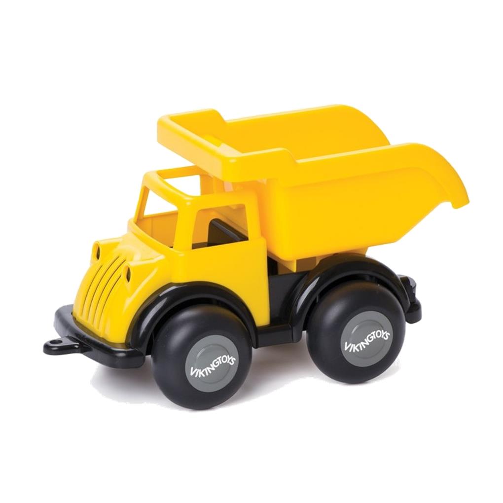 Camión Volquete con colores de construcción, fabricada en polipropileno flexible de alta resistencia. Ruedas grandes, blandas y rugosas para un agarre perfecto.