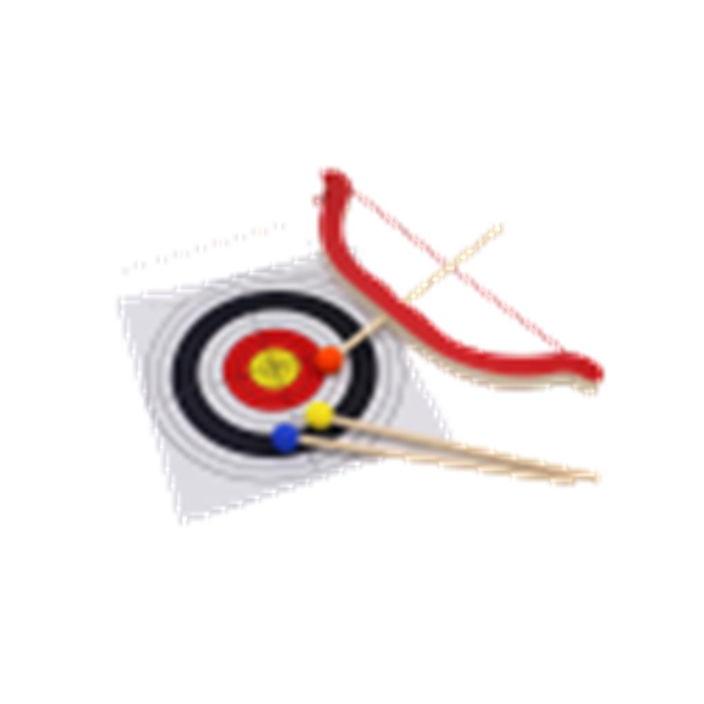 Arco y 3 flechas de madera. Incluye una diana de tela. Las flechas tienen bolas de foam en las puntas, para mayor seguridad. Arco 45cm.