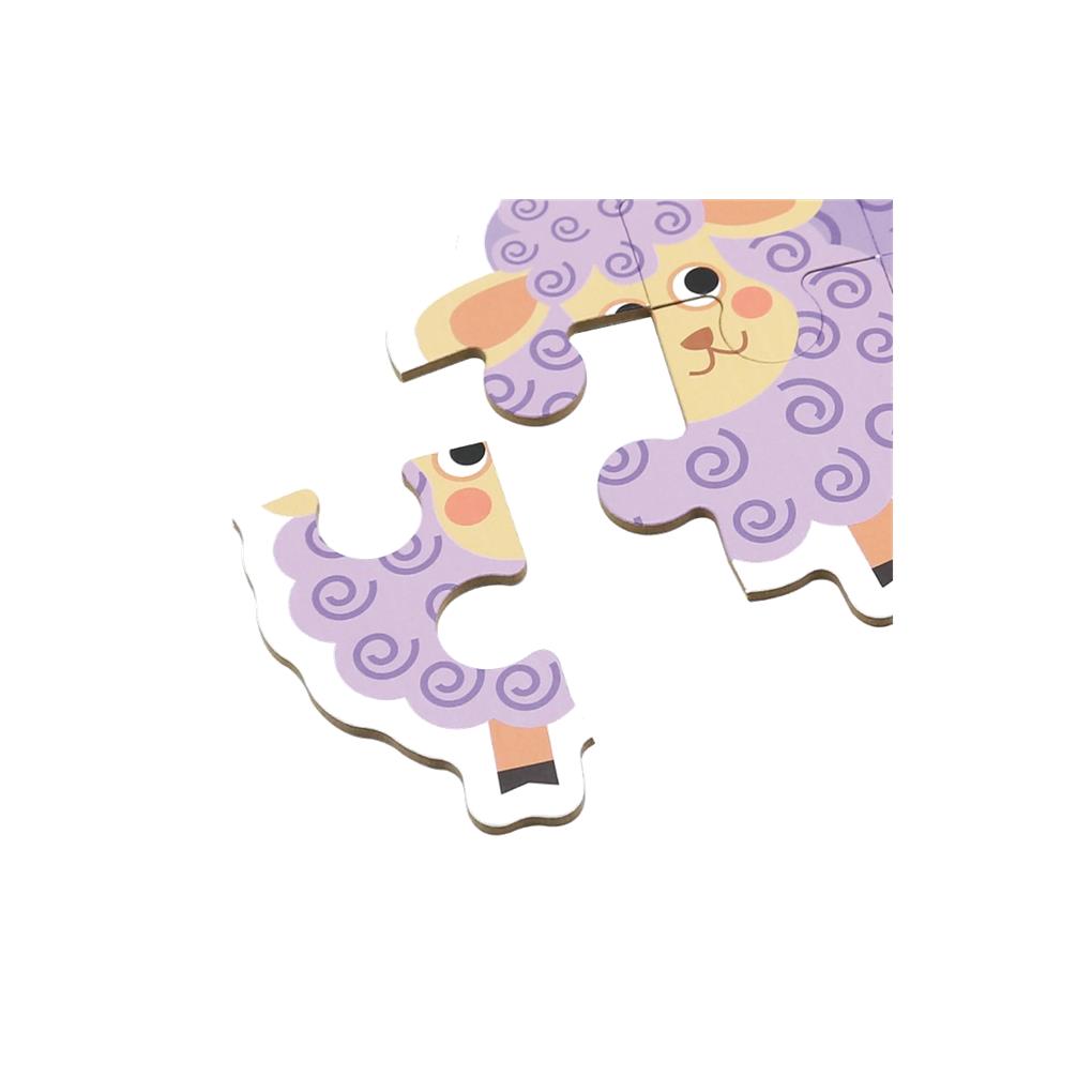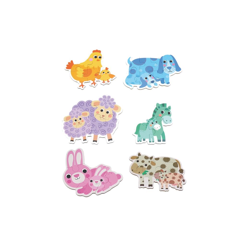 6 Puzzles progresivos de cartón con animales. 3, 4, 5, 6, 7 y 8 piezas respectivamente.