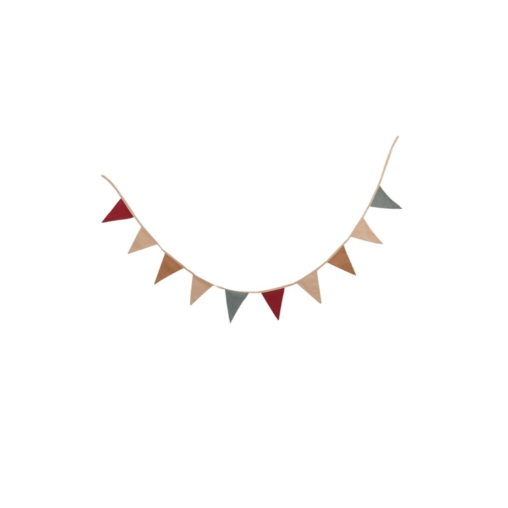 Banderines decorativos. Tonos cálidos. Largo de 21,5 cm. cada bandera. Largo total 2 metros. Con 10 banderines.