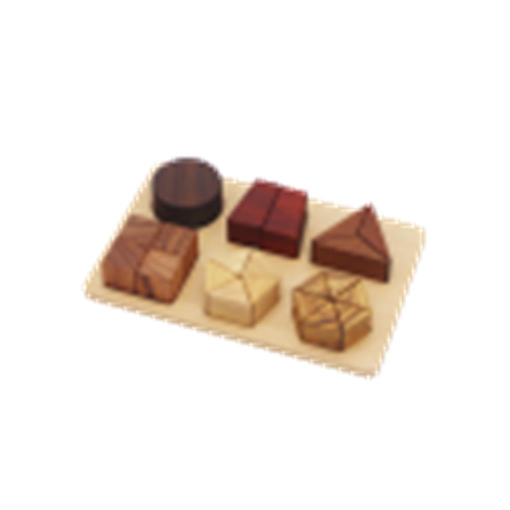 Encaje de 6 formas geométricas, elaborado con diferentes maderas de calidad, creando una combinación