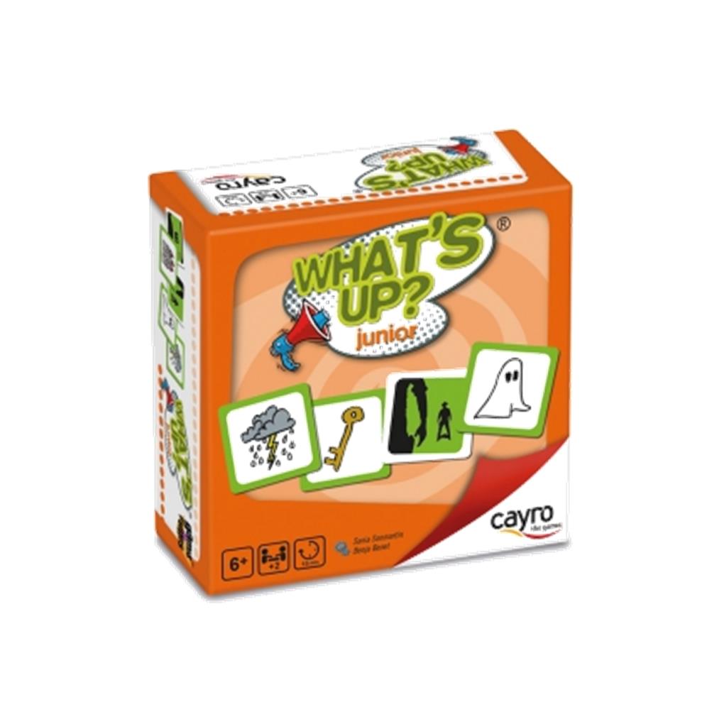 What’s up? Jr. Es un trepidante juego en el que tendréis que crear y contar entre todos los jugadores una disparatada historia usando los divertidos elementos que muestran las cartas del juego (castillo, coche, …). Durante la partida, las distintas cartas de acción os obligarán a seguir la historia con mímica, retar a los compañeros e incluso introduciros a vosotros mismos dentro de la historia.