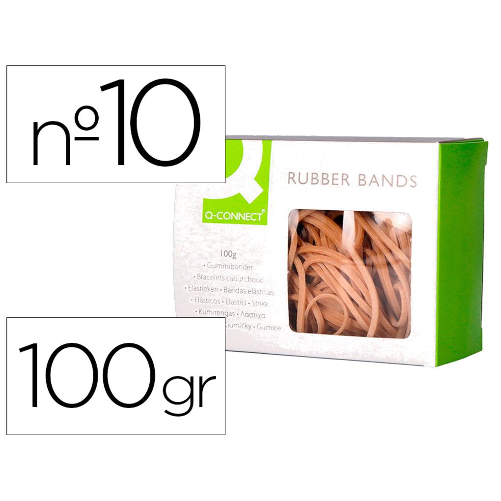 Gomillas elasticas q-connect 100 gr numero 10 100 x 2 mm.
