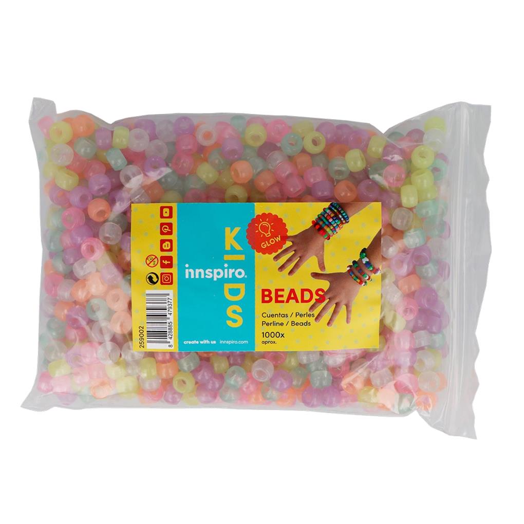 Cuentas de plástico eco. grosella Multicolor fosforescente diam. 9mm. diam. int. 4mm.1000u. aprox.Bolsa