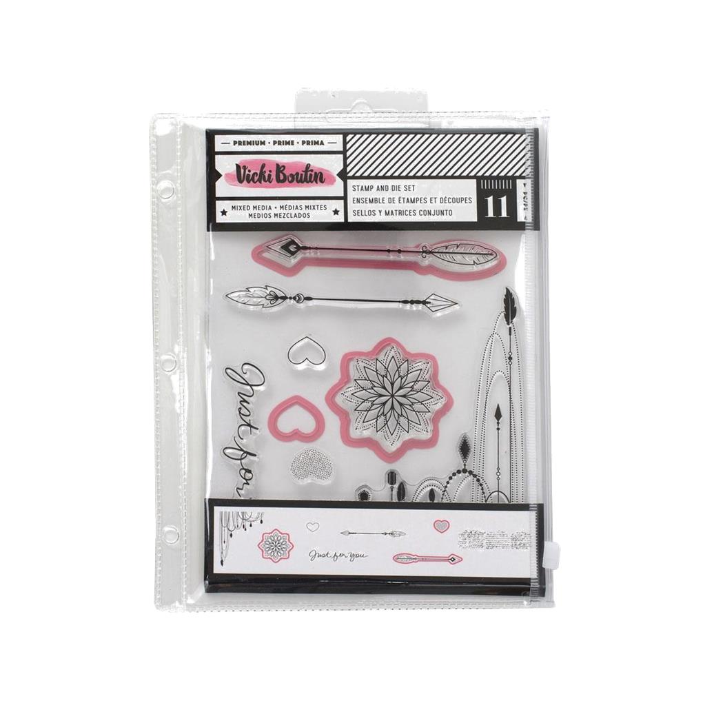Set de 11 sellos y 3 troqueles para dar un toque personalizado a proyectos de scrabooking, tarjetería o manualidades.