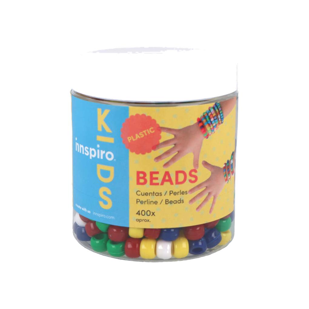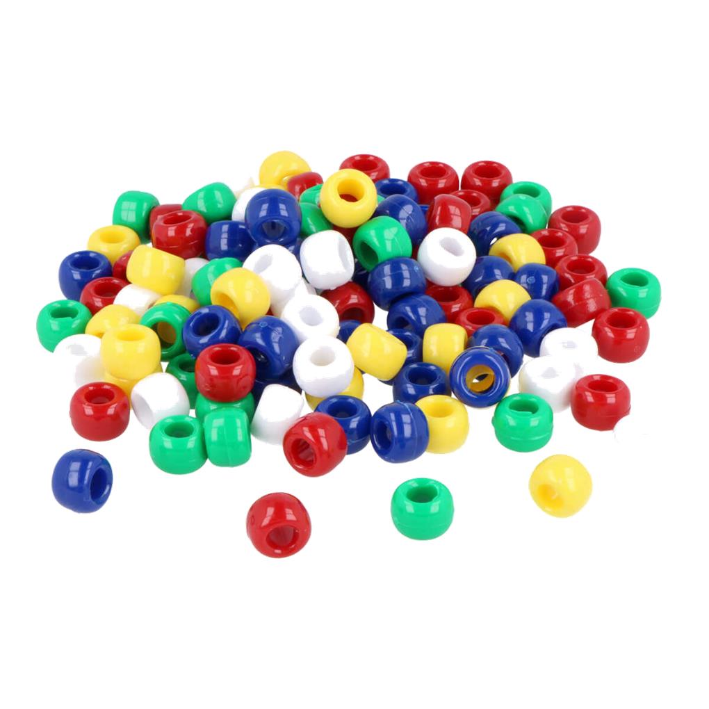 CUENTAS DE PLASTICO BOTE GROSELLA MULTICOLOR OPACO 9MM 400UD APROX.