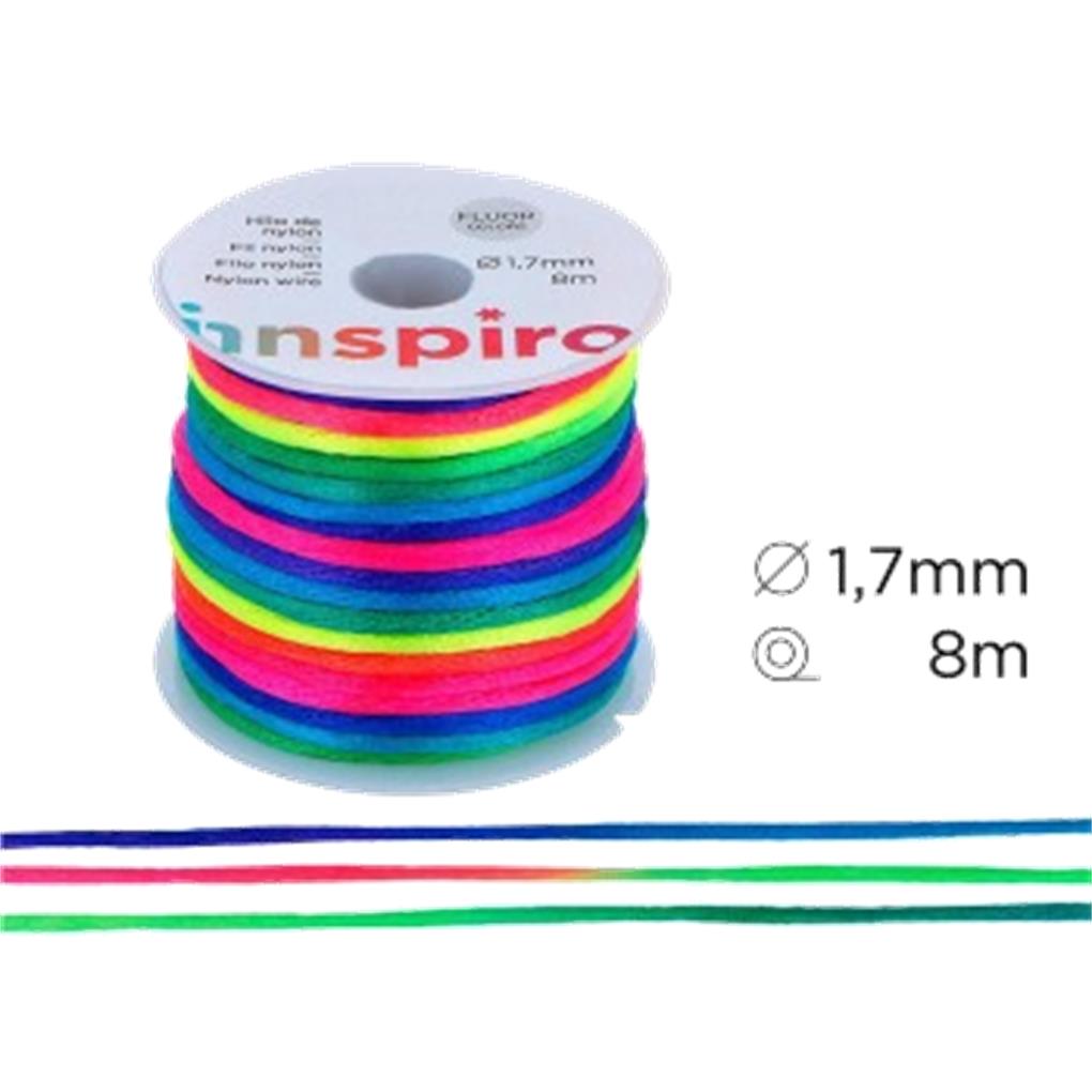 Hilo de Nylon satinado de 8 metros y diámetro. 1,7mm y de color flúor y formado por una suave transición continua de colores, del amarillo a verde, rosa, azul y lila