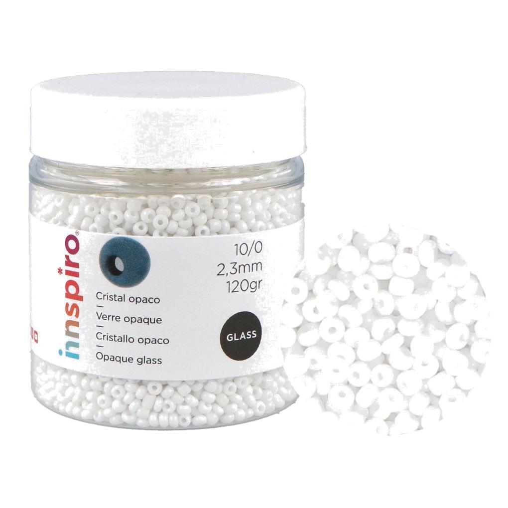 CUENTAS DE VIDRIO OPACO REDONDAS 2,3 MM 120 GR – BLANCO