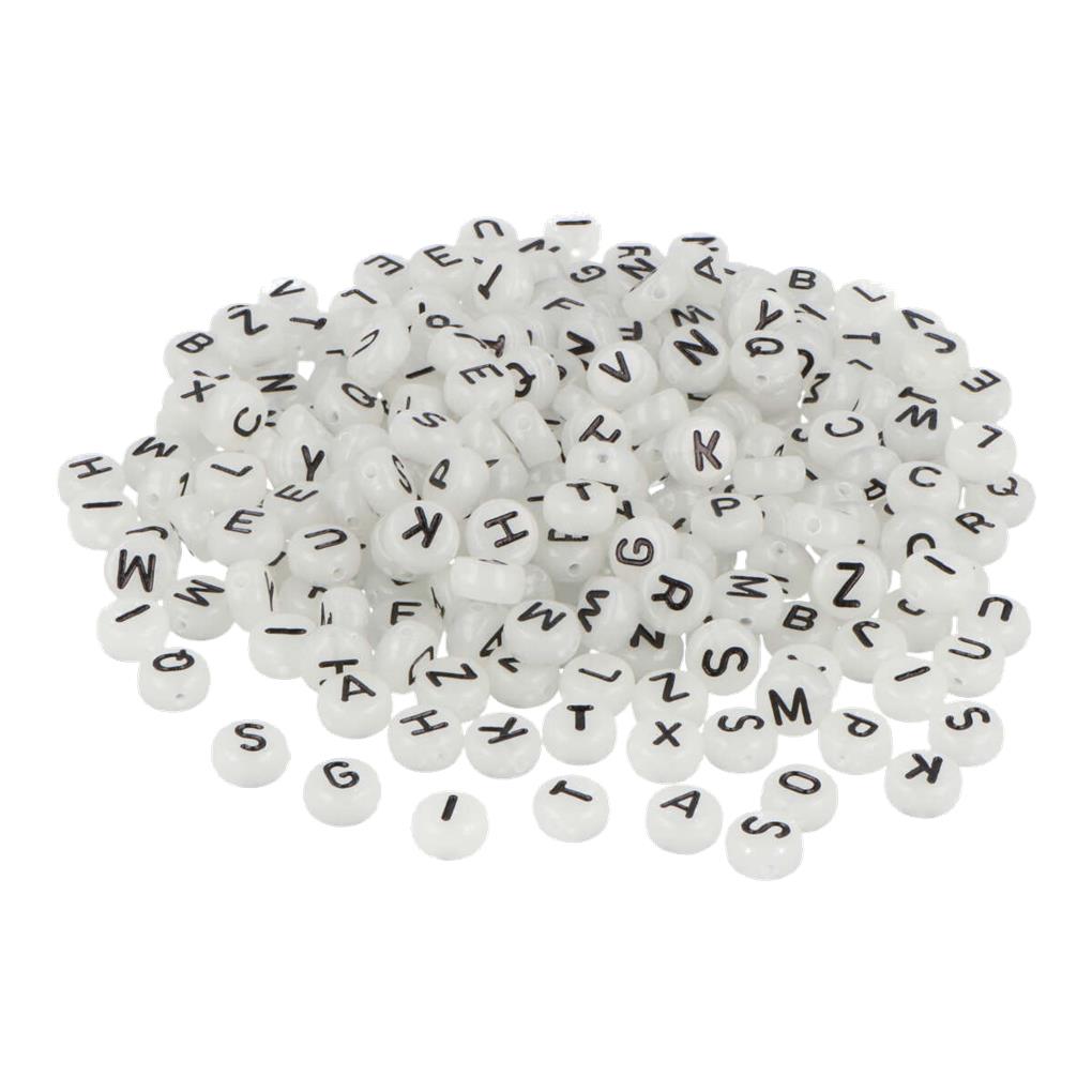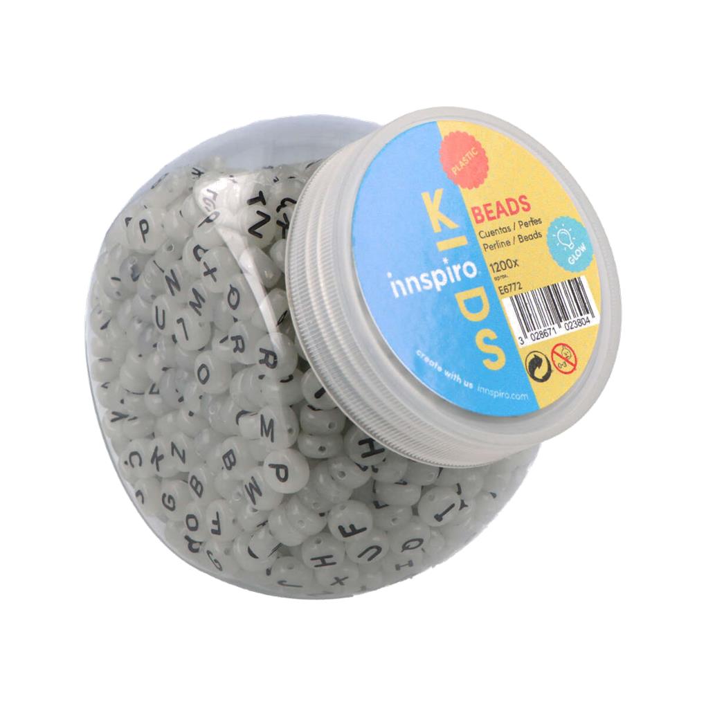CUENTAS DE PLASTICO BOTE LETRAS ABECEDARIO FOSFORESCENTE 7MM 1200 UD APROX.