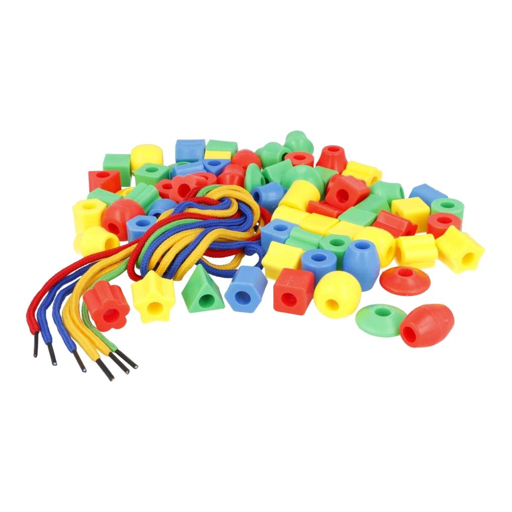 Surtido de cuentas muy grandes de plástico en formas surtidas para enfilar con 6 hilos de cordón incluido