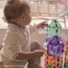 Este circuito de bolas Cleverclixx en colores pastel contiene 110 piezas.