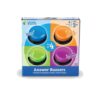 Anima cualquier juego con estos coloridos zumbadores de respuesta que parpadean. Los zumbadores «Game-show» convierten cualquier lección en un juego. Los botones del zumbador se iluminan al pulsarlos. Cuatro colores: azul, rojo, verde y amarillo. Cuatro sonidos: sirena, carga, láser y zumbido. Los zumbadores miden 9 cm de diámetro. Cada zumbador requiere 2 pilas AAA, no incluidas. Edad: 3+