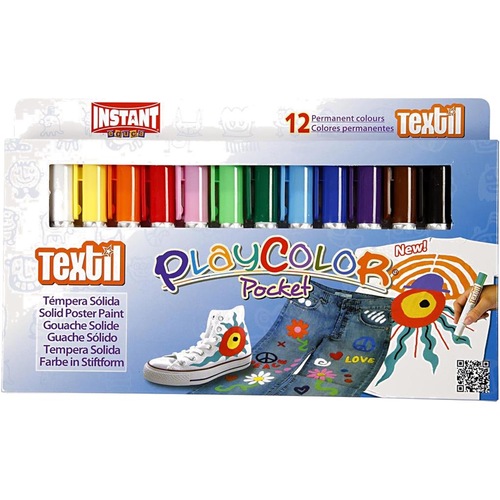 Set de 12 colores playcolor textil témpera sólida para ropa.