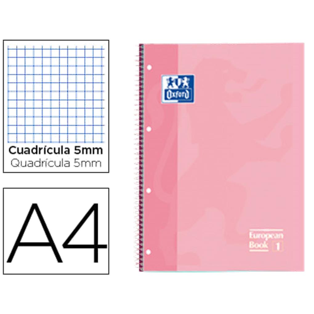 Bloc espiral oxford tapa extradura microperforado din a4 80 hojas cuadros 5 mm color rosa dulce.