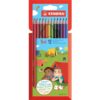 Lápiz de color de madera cin diseño ergonómico triangular especialmente orientado para niños. Diámetro de la min 4,2 mm. Rica aplicación del color.