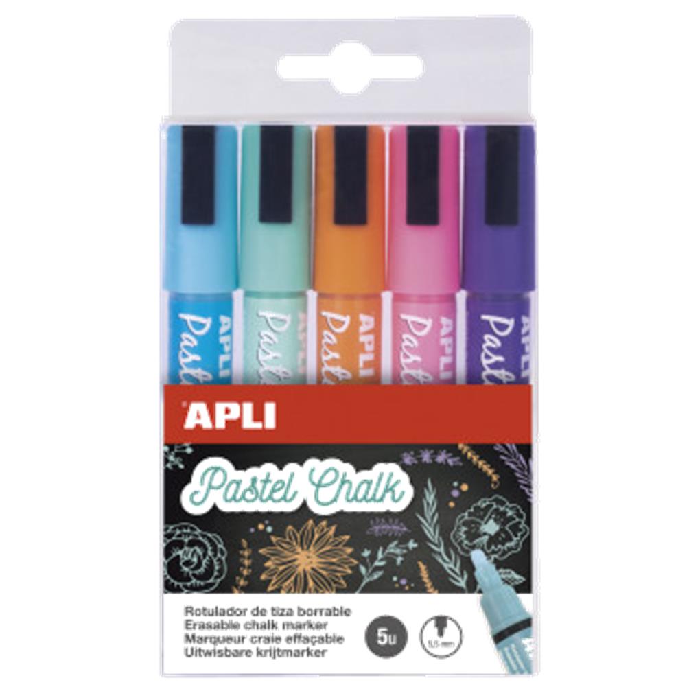 ROTULADORES TIZA LIQUIDA PUNTA REDONDA 5,5 MM. 5 COLORES PASTEL APLI