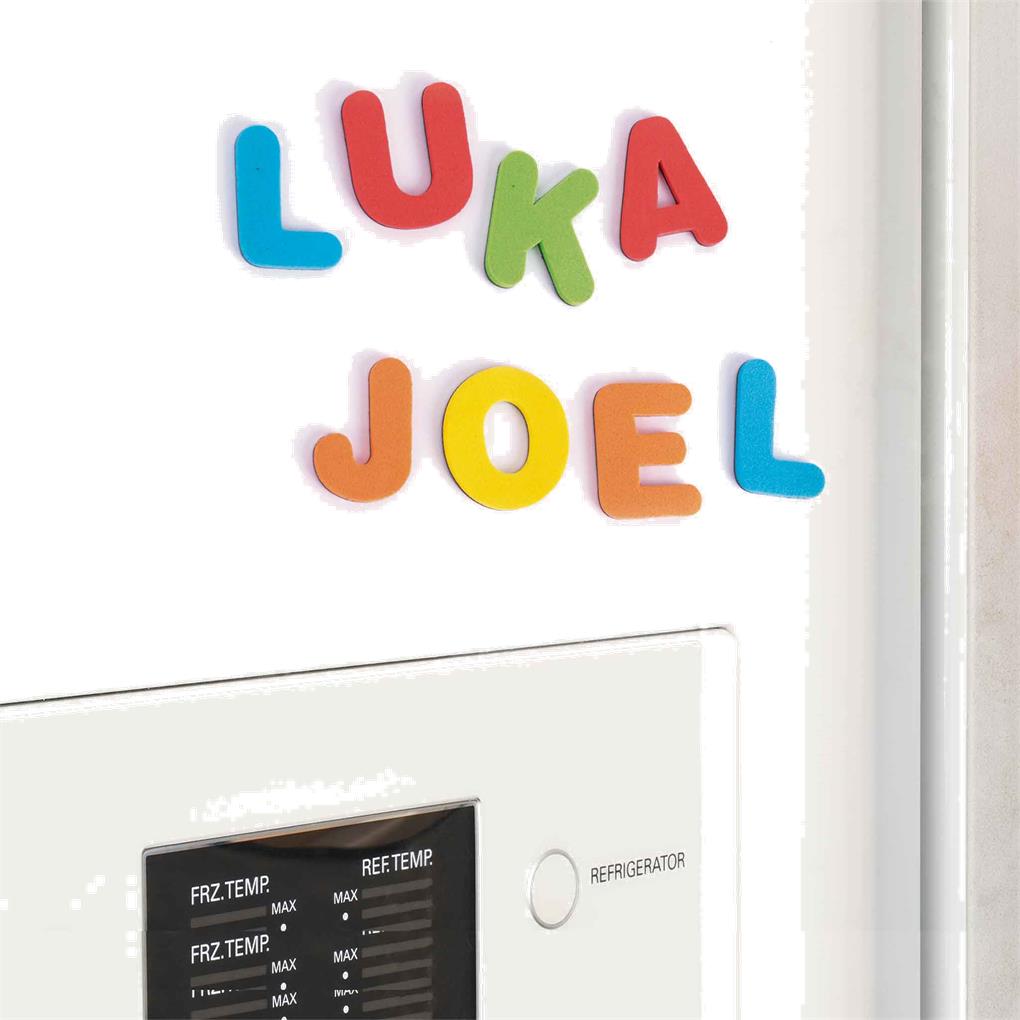Distintos imanes de goma EVA en forma de letras de distintos colores surtidos.
