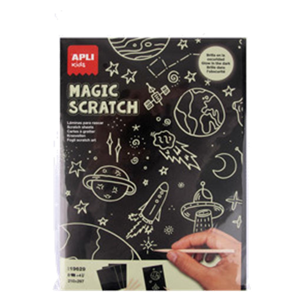 LAMINAS PARA RASCAR GLOW IN THE DARK 8 HOJAS + 4 RASCADORES