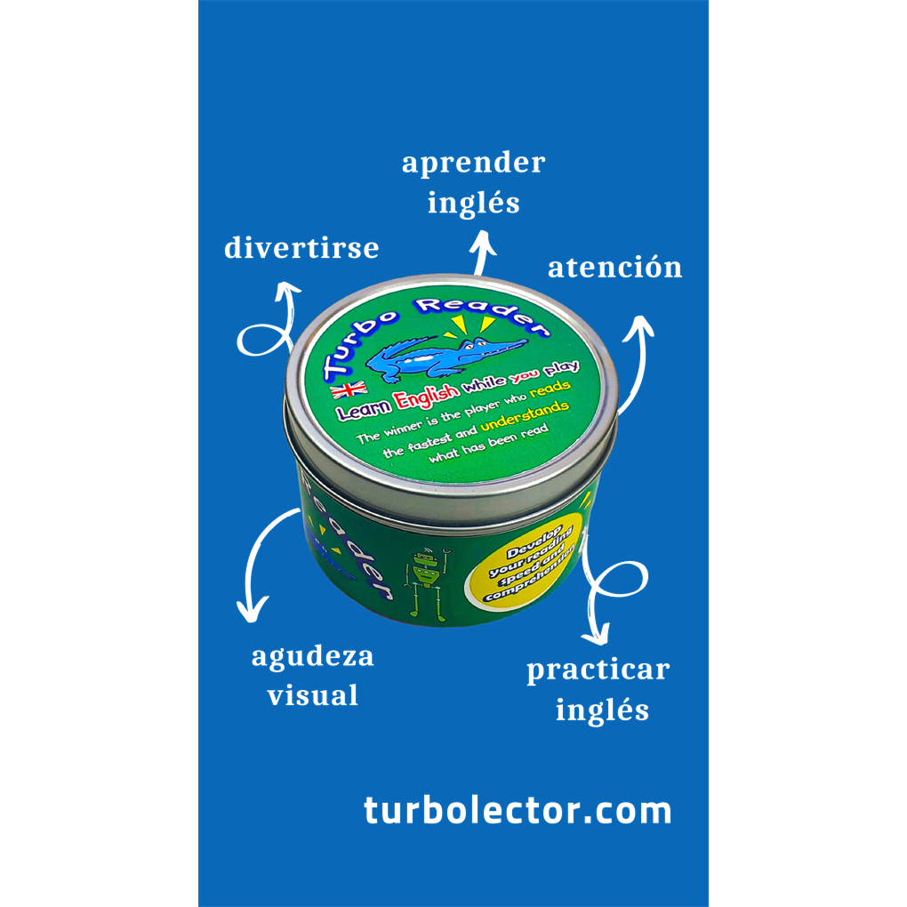 Turbo Lector es un juego didáctico de comprensión lectora, ideal para primeros lectores. Se trata de unas tarjetas con varios elementos que tienen un texto asociado y se puede jugar de múltiples maneras, en el manual de instrucciones te vienen muchas formas de juego. Divertidísimas todas. Es un formato muy cómodo de llevar, ya que es una latita que no ocupa nada y dentro de ella encuentras los tres niveles de dificultad: básico, intermedio y avanzado. Tiene un sistema de autocorrección que favorece su autonomía y no necesitarán del adulto para comprobar si es correcto. Puedes hacerte con la versión en español, pero también existe una versión en inglés, ideal para aprender y repasar inglés. Turbo Lector. Juego de Lectura para niños y Mayores. Mejora la comprensión y la Velocidad lectora. Turbo Lector. Juego de Lectura para niños y Mayores. Mejora la comprensión y la Velocidad lectora.