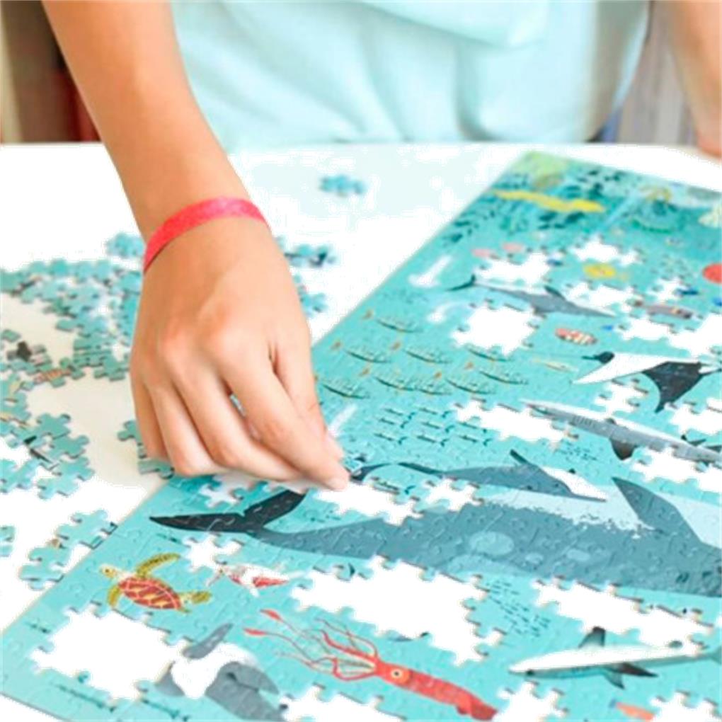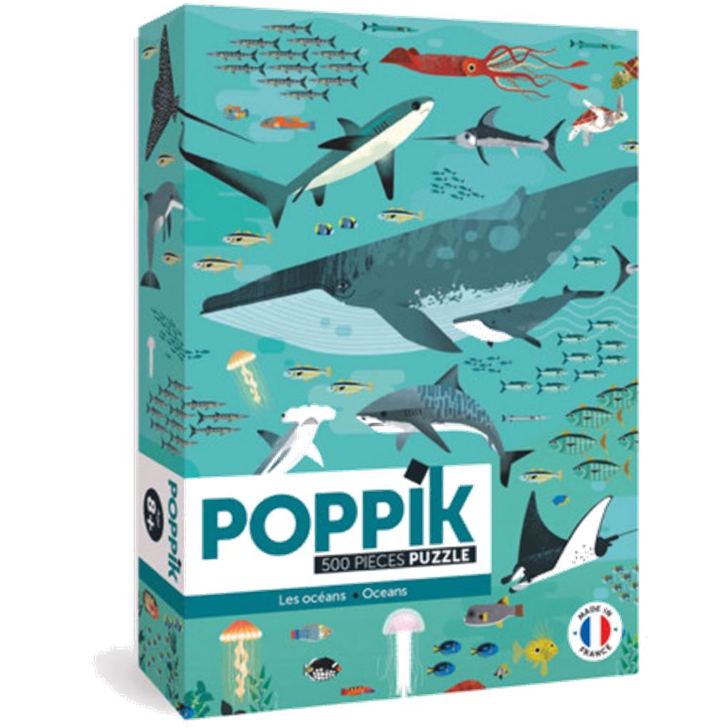 En el puzzle Discovery de Poppik Animales Marinos aparecen muchos de los habitantes del océano más famosos: ballenas, tiburones, pulpos, medusas, mantas rayas…