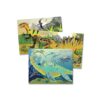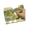 Es simple y fácil hacer tres paisajes jurásicos. Rascar las piezas precortadas para personalizar cad
