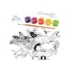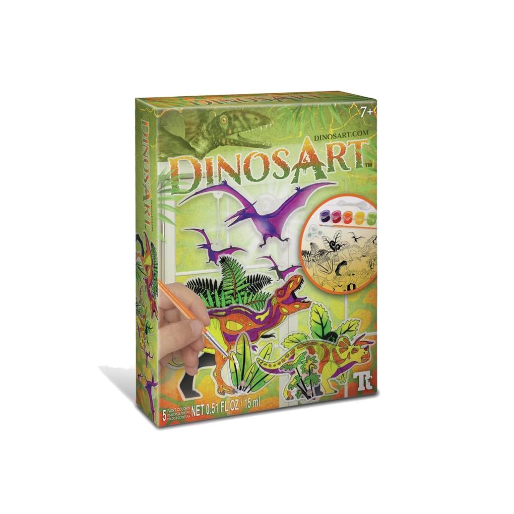 Crea 3 adhesivos para ventanas de dinosaurios. Pinta las piezas precortadas, adjuntalas a una ventos