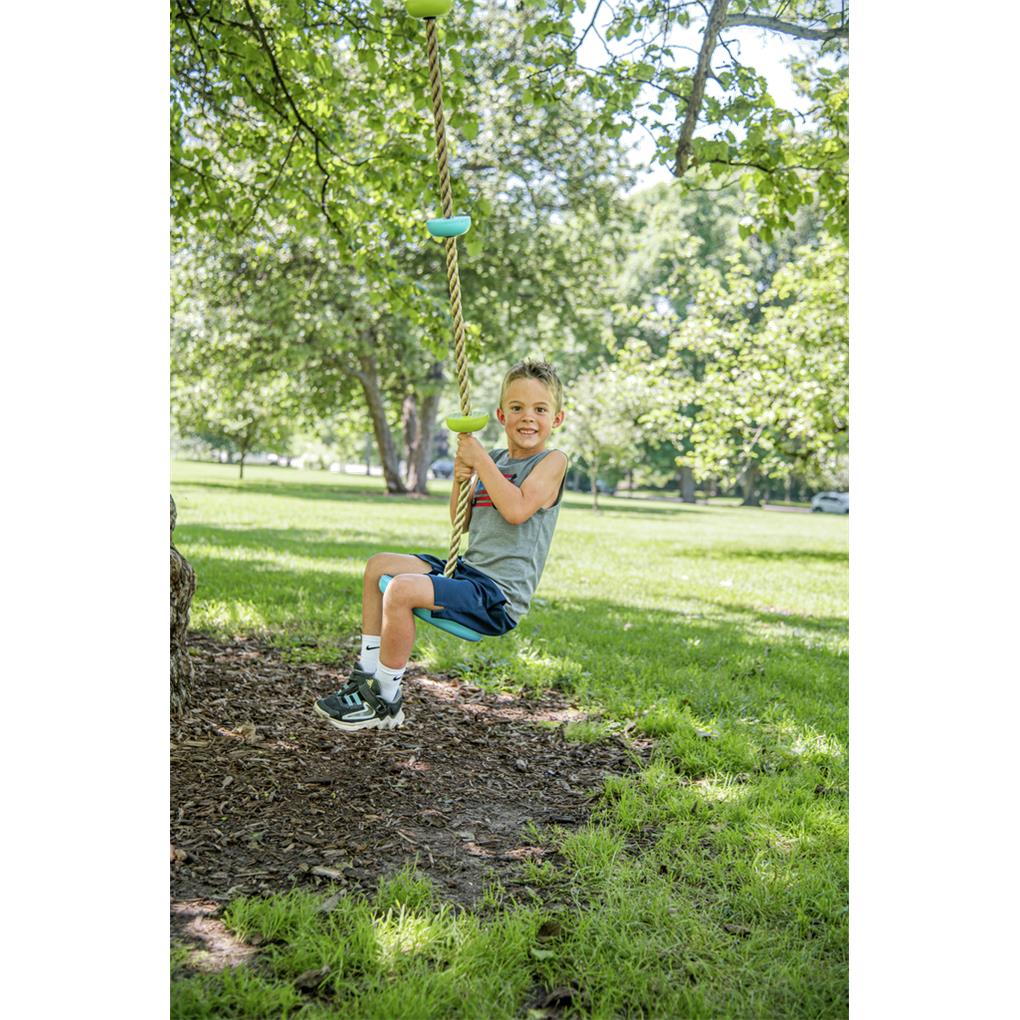 COMBO SÚPER POPULAR DE CUERDA PARA ESCALAR Y COLUMPIO DE 1,8 METROS: La sólida base resistente facilita que los niños suban por la cuerda con mayor facilidad, en comparación con un agarre de escalada más pequeño en la parte inferior. También puede ser utilizado como asiento de columpio para sentarse y balancearse de un lado a otro. Los 3 agarres de escalada hacen que la cuerda sea un obstáculo divertido y desafiante. Se puede sujetar fácilmente a líneas de Trelines Ninja o columpios, estructuras de juego o incluso ramas de árboles.
