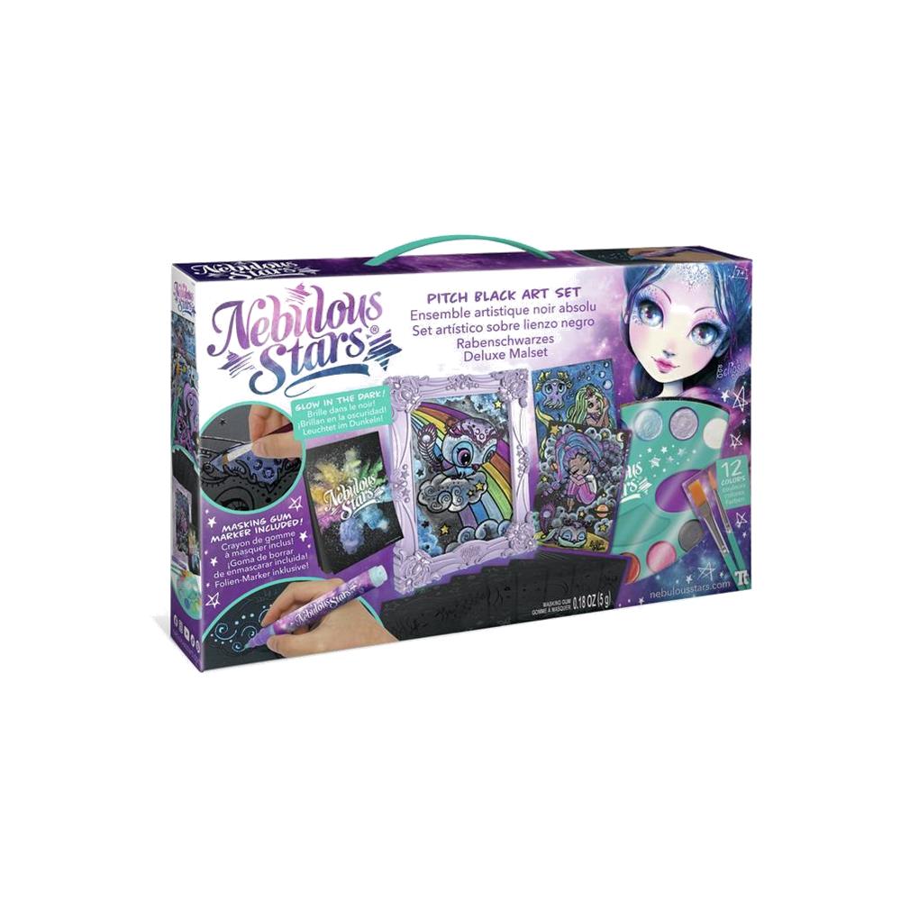 Set artístico Pitch Black: 12 pinturas de acuarela metalizadas Las estrellas solo brillan en la oscuridad. Este juego incluye láminas negras mágicas para acuarela que brilla en la oscuridad, una paleta de colores metalizados y mucho más. Todo lo que necesitas para crear obras de arte dignas de un cielo estrellado.
