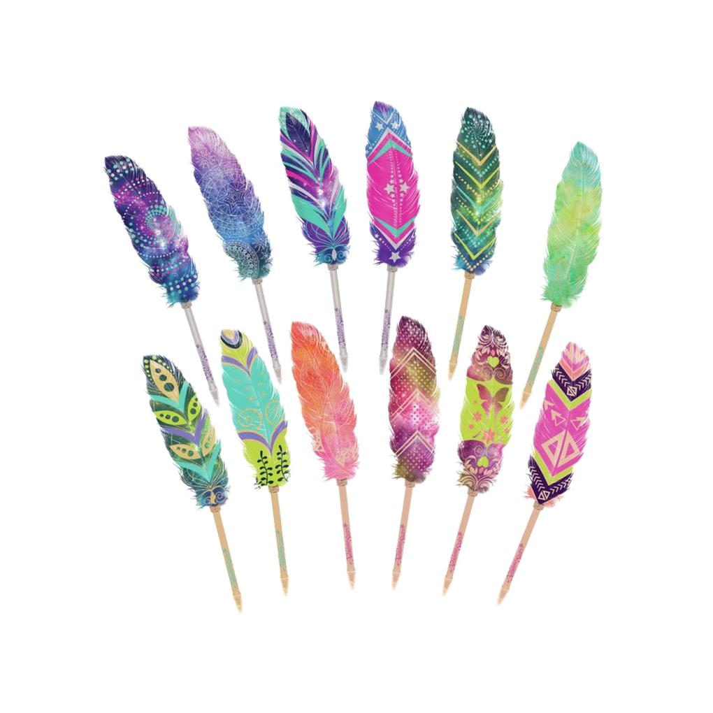 Bolígrafo con Pluma: Una colección de 12 bolígrafos pluma. 12 bonitos motivos estampados en plumas reales.