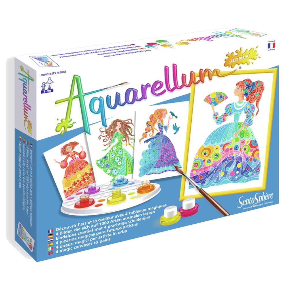 ¡Fantástico! Unas gotas de pintura y podrás crear verdaderas obras de arte. Aquarellum Junior se basa en una técnica de estampado de papel vitela que sólo deja que la pintura se adhiera en determinadas zonas: el motivo aparece a medida que el pincel se pasa por encima y se puede repintar hasta conseguir una perfecta armonía. Esta actividad artística es ideal para enseñar a los niños la composición de los colores. Además estimula la imaginación, la concentración y la precisión.