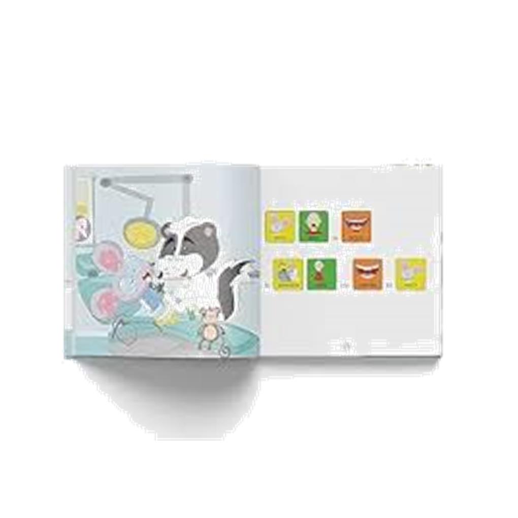 Incluye textos en letra mayúscula para que se inicien de manera mucho más visual y sencilla en el mundo de la lectura a través de acciones cotidianas, en este caso, ir al dentista.