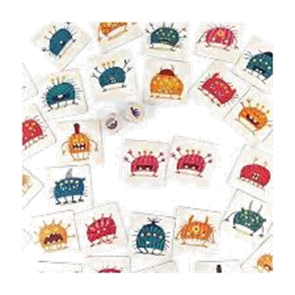 Los jugadores decidirán si quieren formar dos o más equipos. Describe y encuentra al monstruo correcto tan rápido como puedas (¡no pierdas de vista el reloj de arena!), ya que cada monstruo busca a su gemelo. ¡Fíjate mucho en los detalles! Pero, ojo… que no es tan sencillo como parece. Tendrás que tirar los dados para saber qué pistas no puedes dar: número de piernas, color, número de ojos… Si algún jugador da más información de la que debería, tendrá que sacar una nueva carta de monstruo y empezar de nuevo, perdiendo un tiempo muy valioso. ¿Qué equipo encontrará a más gemelos?