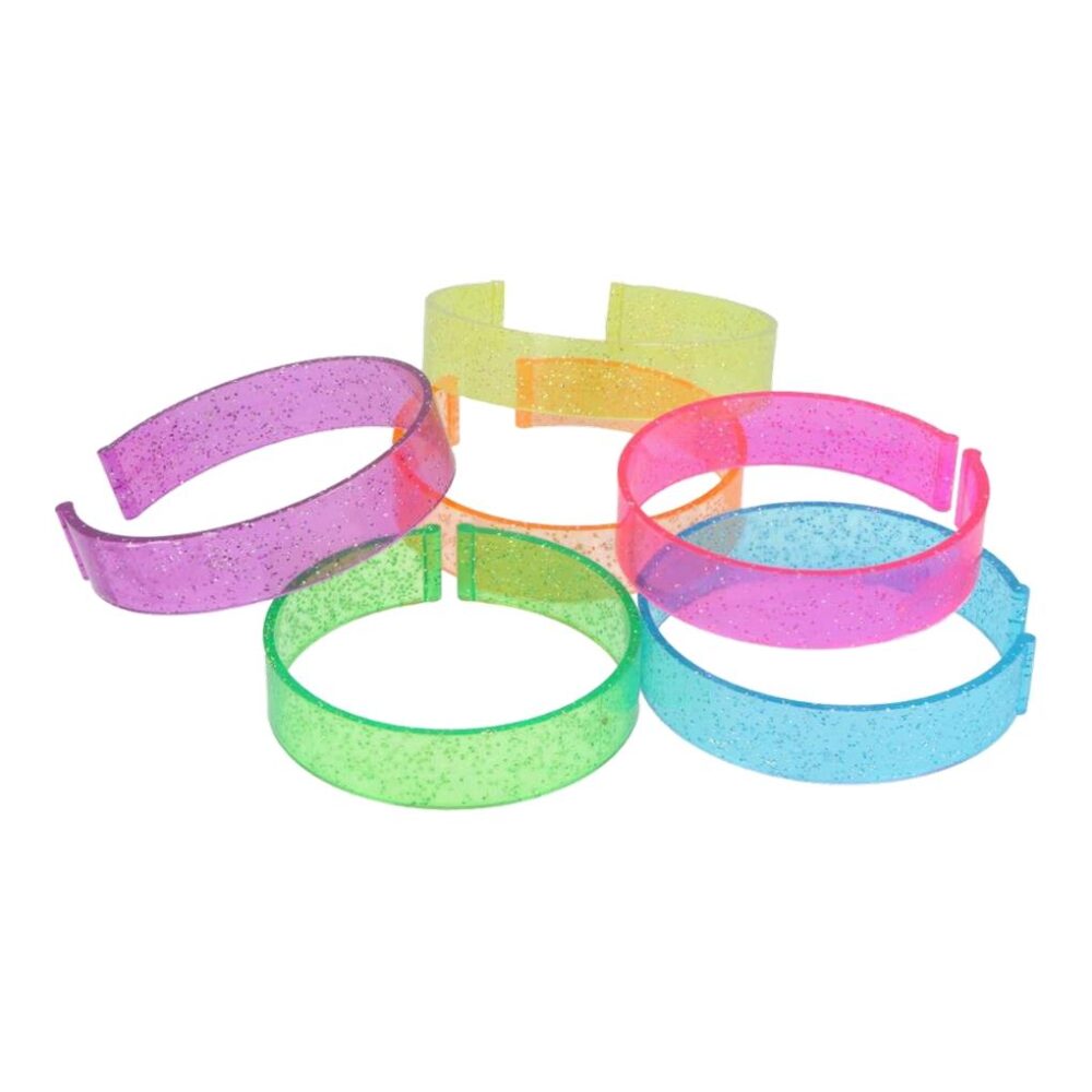 BOLSA 6 BRAZALETES DE PLASTICO PURPURINA DIAMETRO 5.5 CM